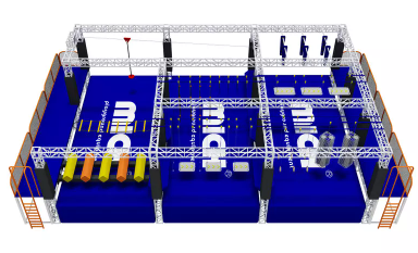 Indoor Ninja Course | Built in gyms or play centers, protected from weather | Kids & adults | Foam pits, soft grips, modular walls |